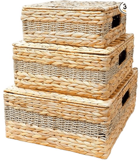 Handcrafted Charm – These water hyacinth basket sets are handwoven, offering a unique, rustic touch to your decor, making each piece a decorative basket with lid, wicker basket with lid, woven storage basket with lid, wicker storage box, rectangle wicker basket, large rectangular basket that’s both practical and stylish.